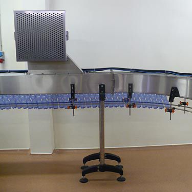 Воздушные конвейеры предназначены для транспортировки пустых PET бутылок при помощи воздушного потока. Использование воздушного конвейера для этой цели является наиболее эффективным. Фиксация PET бутылки производится за горлышко, что исключает ее падение, перекос и обеспечивает точную фиксацию в машине для розлива.